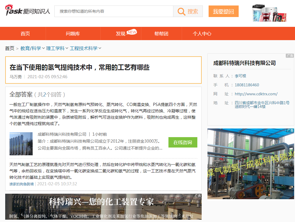 投放824條商盟,成都氯乙烯專用吸附劑、2000方甲裂制氫裝置、1.5萬方甲裂制氫、800方焦爐煤氣提氫、1.5萬方氫氣提純裝置、900方甲裂制氫、成都氧化鋁專用硅膠等關鍵詞都在吉斯特建材網、好優網、商機購、365資源網等平臺展現,大大提高了搜索引擎抓取收錄機會。